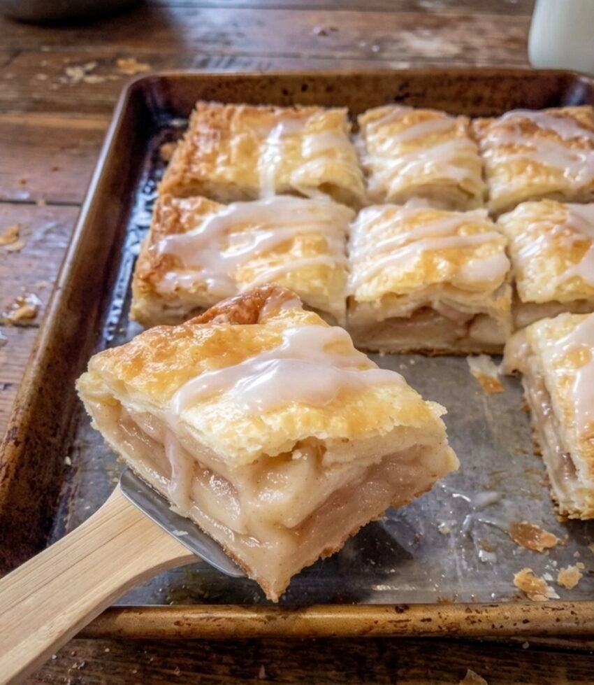 The Chicago-Style Bakery Apple Slice is an iconic Midwest pastry—a thick, rectangular slab with a soft, cake-like crust, a spiced apple filling, and a sweet vanilla glaze. It’s more substantial and less flaky than a traditional Danish.